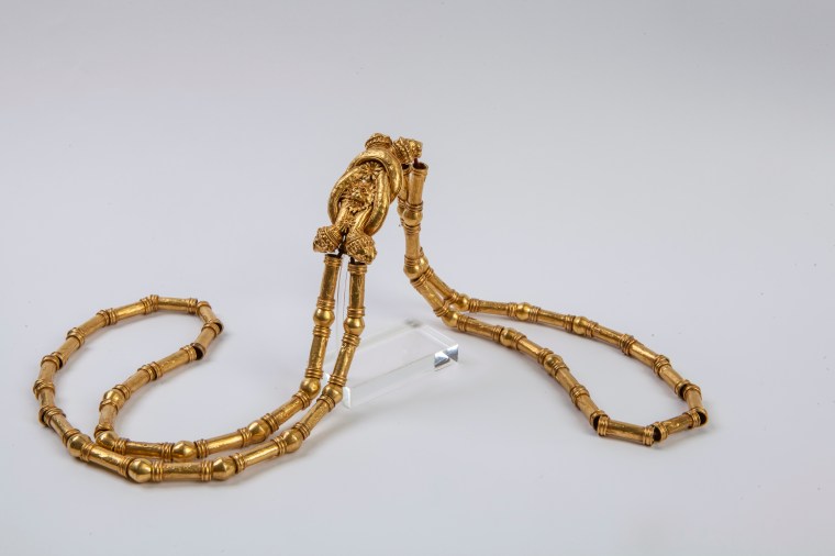 Το Εθνικό Αρχαιολογικό Μουσείο δανείζει για τους σκοπούς της έκθεσης 147 αρχαία έργα. Η αφήγηση θα ξεδιπλώσει το μύθο του Χρυσόμαλλου Δέρατος και τη διασπορά της αρχαίας τέχνης του χρυσού από την προϊστορική περίοδο ως το τέλος της αρχαιότητας, μεταξύ των πολιτισμών του Ευξείνου Πόντου και της Μεσογείου.
