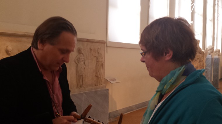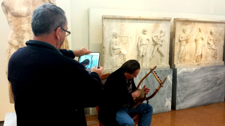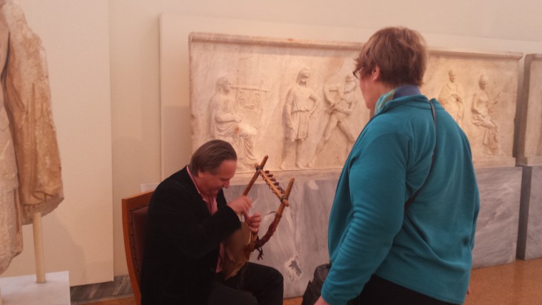 Sounds of ancient Greek lyre at the National Archaeological Museum of Athens played today by Nikos Xanthoulis. “Unique and unexpected moments” for the museum visitor Jane McAdoo.