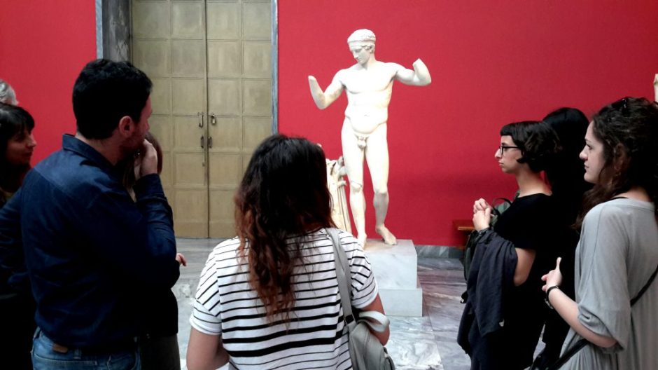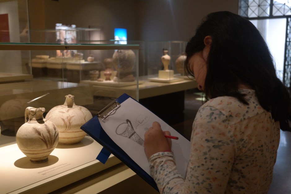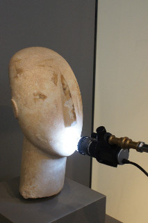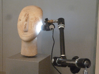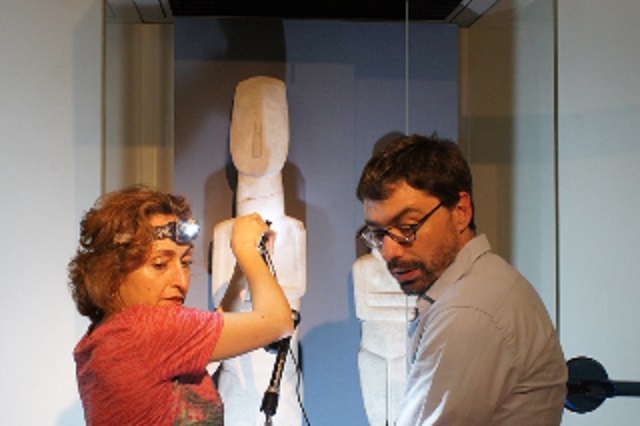 Στις Κυκλάδες, κατά την 3η χιλιετία, η ανθρώπινη μορφή, από την πλέον συνοπτική και σχηματική έως τη πιο φυσιοκρατική απόδοσή της λαξεύτηκε στο μάρμαρο και στη συνέχεια συμπληρώθηκε και ολοκληρώθηκε με ζωγράφιση. Μάτια, μαλλιά, κοσμήματα και άλλα θέματα, χρωματισμένα με κόκκινο, γαλάζιο ή μαύρο χρώμα, έδιναν ενέργεια και ιδιαίτερα χαρακτηριστικά στις μορφές, που με αυτόν τον τρόπο εμψυχώνονταν και αποκτούσαν ανθρώπινη ζωντάνια. Η ζωγραφική, επομένως, αποτελούσε βασικό στοιχείο για την απεικόνιση της ανθρώπινης μορφής. (Κείμενο: Κική Μπίρταχα)