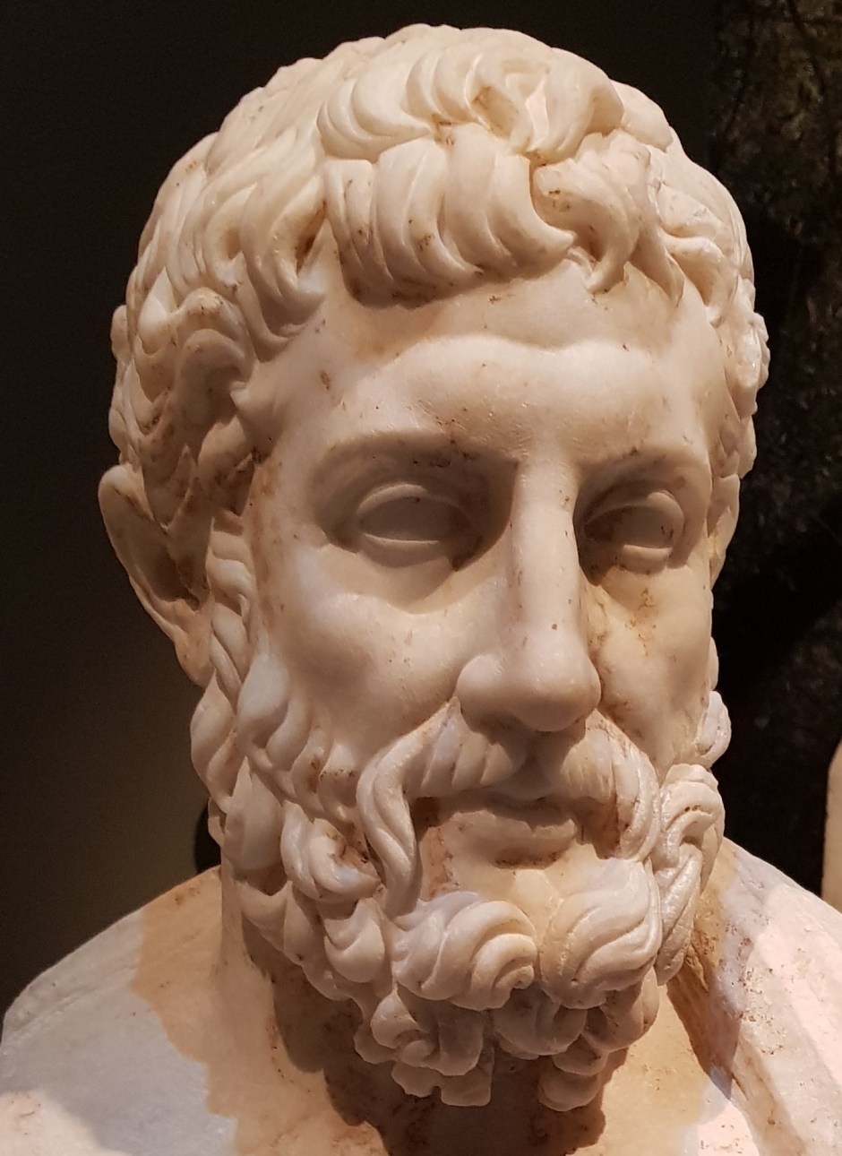 δίπλα στον αγαπημένο του διδάσκαλο Επίκουρο.