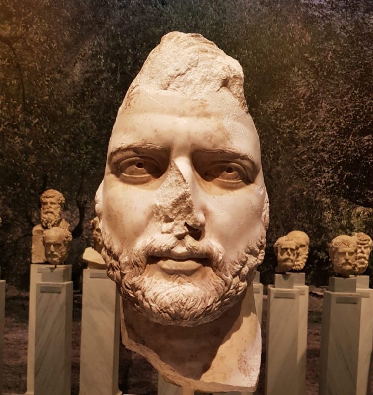 Εικονιστική κεφαλή του Ηρώδη Αττικού. Εθνικό Αρχαιολογικό Μουσείο, αρ. ευρ. Γ 435. Ύψος 0,31 μ. Μάρμαρο πεντελικό.