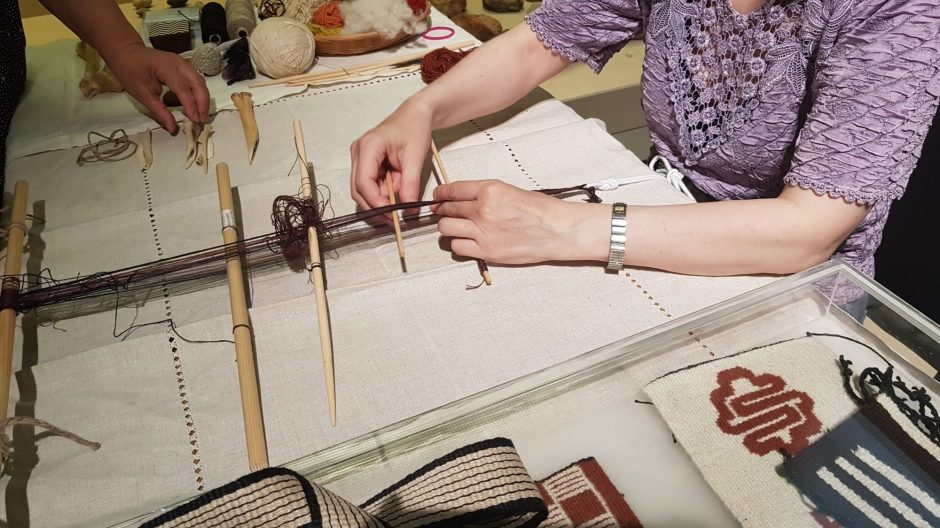 Η Δρ Καλλιόπη Σαρρή, αρχαιολόγος και ερευνήτρια του Κέντρου Έρευνας της Υφαντικής στο Ινστιτούτο Saxo του Πανεπιστημίου της Κοπεγχάγης και η Ulrikka Mokdad, καλλιτέχνης ταπισερί, ιστορικός τέχνης και συνεργάτης του ιδίου κέντρου (Centre for Textile Research), παρουσίασαν τις πειραματικές τους προσεγγίσεις ως προς τις τεχνικές ύφανσης μοτίβων που απαντώνται σε πήλινα αγγεία και σφραγίδες της Νεολιθικής Ελλάδας.