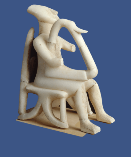 Significant witnesses are the two marble figurines of the National Archaeological Museum that come from Keros and illustrate musicians playing harp and double flutes.
