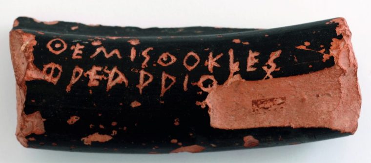 Όστρακο οστρακισμού με το όνομα του Θεμιστοκλή, στρατηγού και αρχηγού της δημοκρατικής παράταξης. Γύρω στο 470 π.Χ. ΕΑΜ 11712