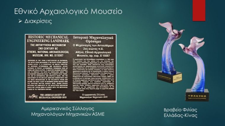 - η αναγνώριση του Μηχανισμού των Αντικυθήρων ως Ιστορικού Μηχανολογικού Ορόσημου από τον Αμερικανικό Σύλλογο Μηχανολόγων Μηχανικών ΑSME (American Society of Mechanical Engineering) που αντιπροσωπεύει διεθνώς 200.000 μέλη και