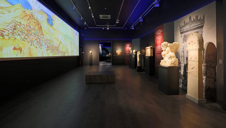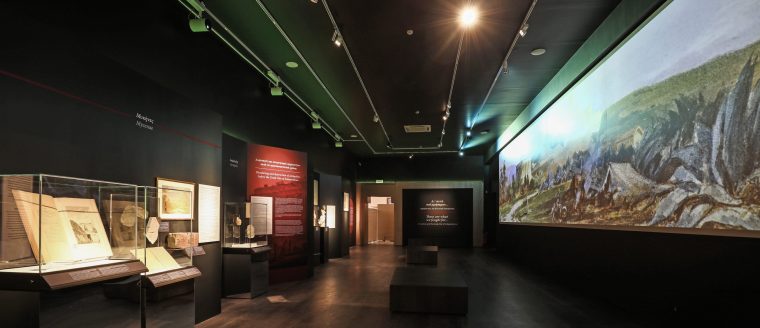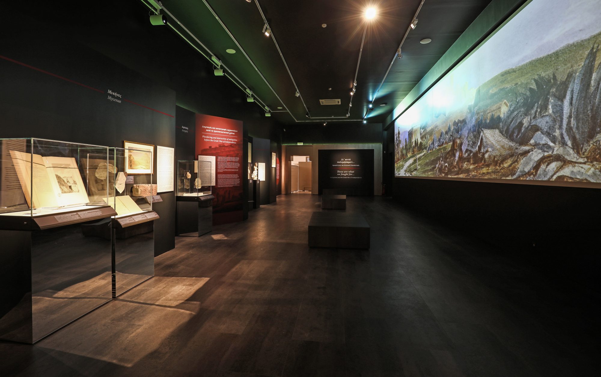 The exhibition is enhanced by digital projections that feature landscapes of pre-revolutionary Greece, accompanied by a text of Chateaubriand, an ardent supporter of the Greek cause, who in a lively manner remarks upon the harmonious relationship of the natural landscape with antiquities.