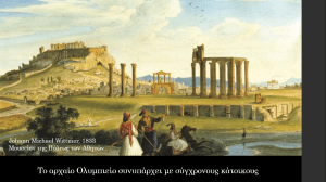 Ο ποταμός Ιλισός και το αρχαίο Ολυμπιείο συνυπάρχουν με σύγχρονους κατοίκους στην υδατογραφία του Johann Michael Wittmer (1833), ενώ ανάλογη συνύπαρξη προβάλλει και η ελαιογραφία του Edward Lear (1851). Οι ελεύθεροι Έλληνες έπρεπε να ορθοποδήσουν, αλλά και να διαχειριστούν την πατρογονική κληρονομιά, πάνω στην οποία είχαν βασίσει τη νεότερη ταυτότητά τους.