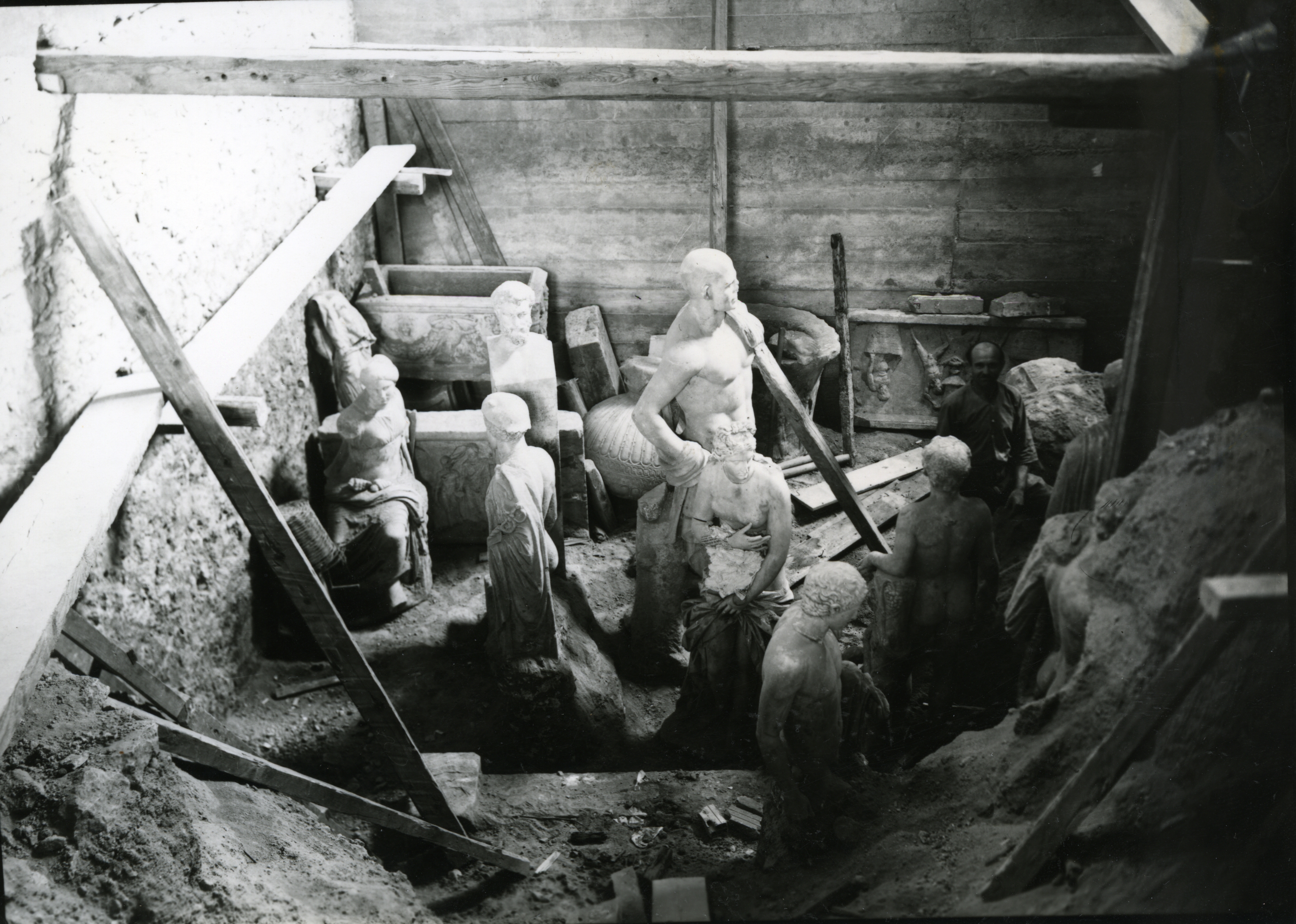 To uncover the buried antiquities was the main priority after the end of the war. Along with the anxiety about their fate: «What had happened under the thick layer of sand, which was the state of preservation of the buried sculptures…».