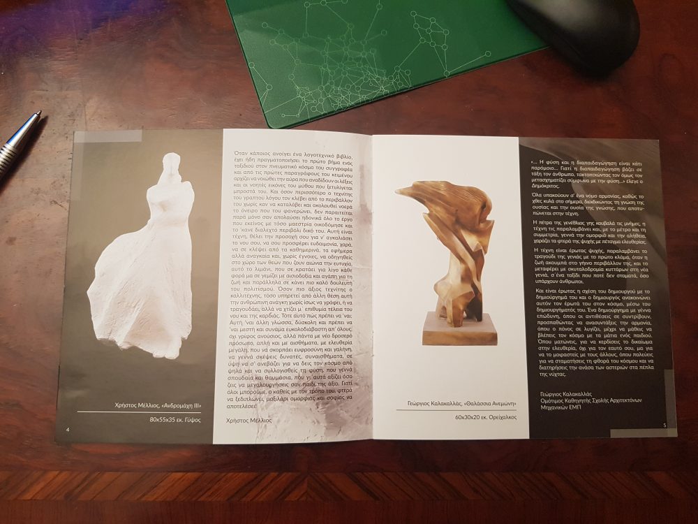 The participation in the big celebration of the National Archaeological Museum for the completion of the 150th anniversary of the foundation of the historic neoclassical building that houses it was similar. In the context of the various anniversary events (2016-2017) the Greek Sculptors Association organized in collaboration with the Museum the action “Sculptural speech” presenting every two months sculptures in dialogue with antiquities. The artists who participated then with their works and with substantial speech and dialogue with the antiquities and the public were the following, according to the order of presentation: Christos Mellios, Georgios Kalakallas, Thymios Panourgias, Achilleus Vassiliou, Dimitrios Armakollas, Kyriakos Rokos.