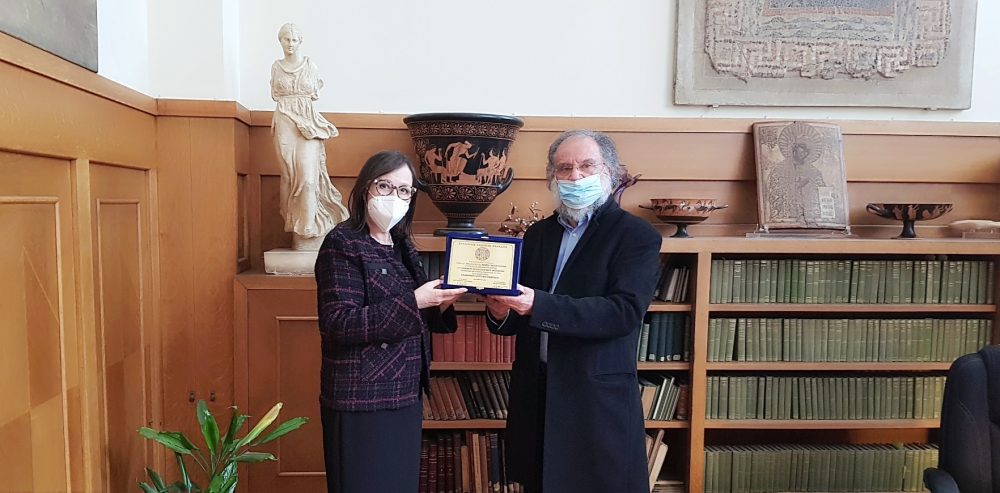Απομένει η αναφορά σε μια άκρως συμβολική και τιμητική κίνηση που μοιράζομαι σήμερα με τους φίλους του all4nam. Στις 21 Δεκεμβρίου 2020, λίγες μέρες πριν αποχωρήσω από τα διοικητικά μου καθήκοντα ως διευθύντριας του Εθνικού Αρχαιολογικού Μουσείου, δέχτηκα την επίσκεψη του κ. Ξενοφώντα Δεστέφανου, Προέδρου του Συλλόγου Γλυπτών Ελλάδος. Με την εξόχως τιμητική πλακέτα που μου απένειμε, ευχαριστεί το Εθνικό Αρχαιολογικό Μουσείο για την εξαιρετική συνεργασία που είχε μαζί του ο Σύλλογος Γλυπτών Ελλάδος.