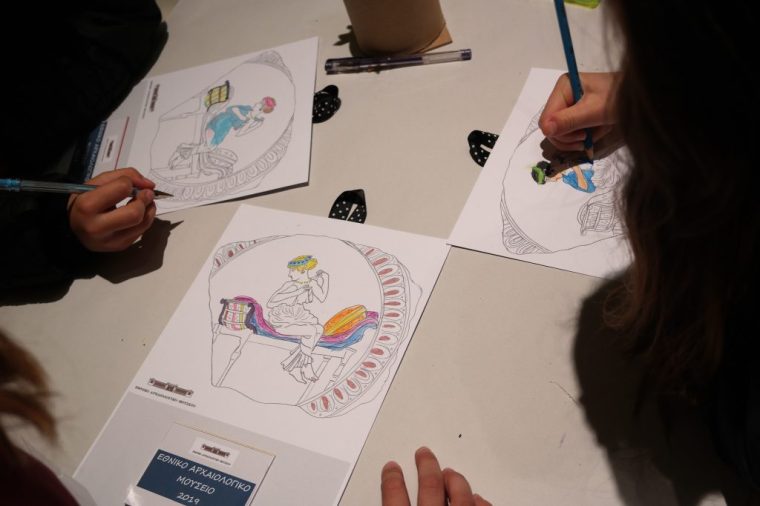 Εικόνες από το συμμετοχικό εργαστήρι ζωγραφικής στο Εθνικό Αρχαιολογικό Μουσείο .