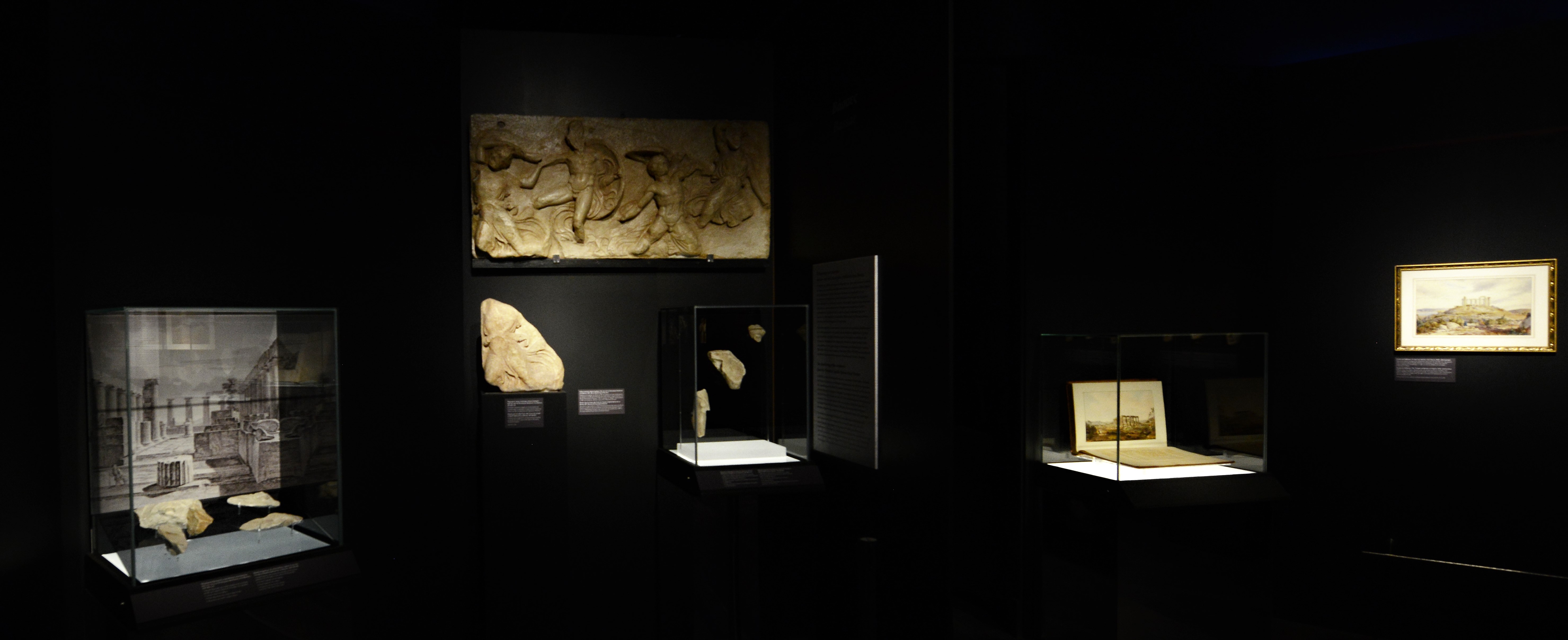 Πρώτος σταθμός η Ακρόπολη των Αθηνών και οι διαρπαγές των αριστουργημάτων από τον λόρδο Έλγιν (1801-03). Ως μάρτυρες του βανδαλισμού παρουσιάζονται στην έκθεση το μαρμάρινο θραύσμα ανδρικής κεφαλής (440 π.Χ.) που προέρχεται από τη βόρεια ζωφόρο του Παρθενώνα και ο μαρμάρινος κορμός πολεμιστή (410-400 π.Χ.) που κοσμούσε τη ζωφόρο του σηκού του Ερεχθείου.